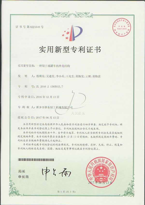 新東機械部分專利證書